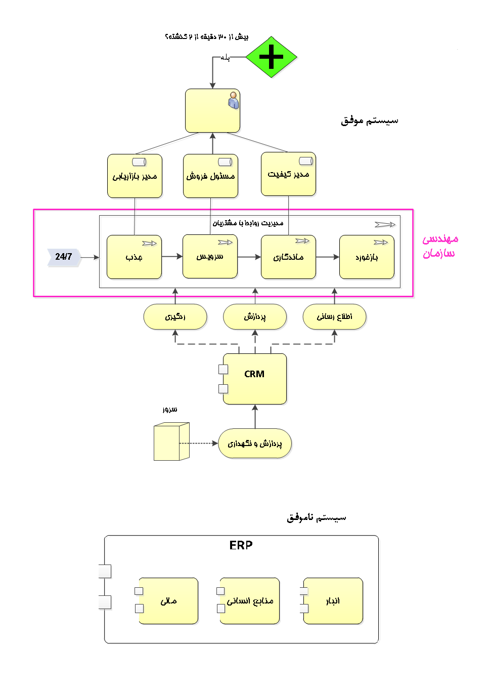 رابطه فرآیند ترسیم شده توسط مهندس سازمان و فرآیند ترسیم شده توسط معمار سازمان چیست؟